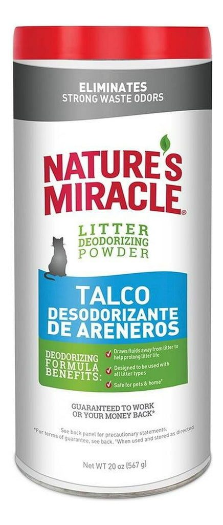 Nature’s Miracle Polvo Desodorante para Areneros 567g – Control avanzado de oloresPolvo desodorante formulado específicamente para controlar y neutralizar los malos olores en areneros. Refuerza la acción de la arena sanitaria sin alterar su composición.Beneficios principales:Neutraliza olores fuertes de orina y hecesProlonga la vida útil de la arenaAporta una fragancia fresca sin ser invasivaModo de uso:Espolvorear una capa ligera sobre la arena limpia cada vez que se rellene o se cambie el arenero. Puede utilizarse a diario para mejorar el control de olores.Características destacadas:Presentación de 567g en polvoNo forma grumos ni interfiere con arenas aglutinantesSeguro para gatos y humanos cuando se usa según instruccionesFragancia fresca ideal para espacios cerradosPotencia su efectividad usándolo junto con:Perlas aromáticas Nature’s MiracleArena sanitaria aglutinante Nature’s MiracleSpray eliminador de olores para áreas cercanas al areneroPalabras integradas:polvo desodorante arenero gato, nature’s miracle 567g, eliminador de olores para arena, desodorante arenero en polvo, control de olores gatos hogarEn Mascotas y Accesorios Mx mejoramos la convivencia con tu mascota.