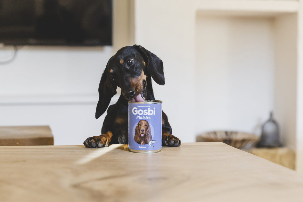 Gosbi Plaisirs Salmón 380g es un alimento húmedo natural para perros elaborado con ingredientes de calidad premium. Diseñado para ofrecer alta palatabilidad, este platillo gourmet es ideal como comida principal o complemento de croquetas.